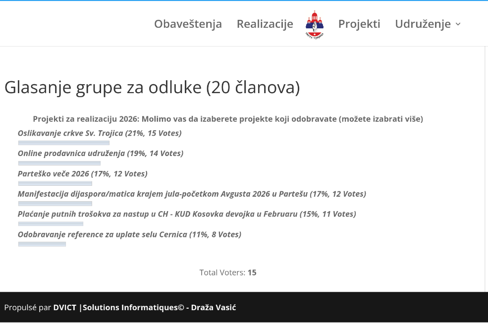Na osnovu analize sa poslednje sednice kao i glasanja aktivnih članova udruženja, na slici se mogu videti projekti koji su odobreni za sprovodjenje tokom 2026 godine.